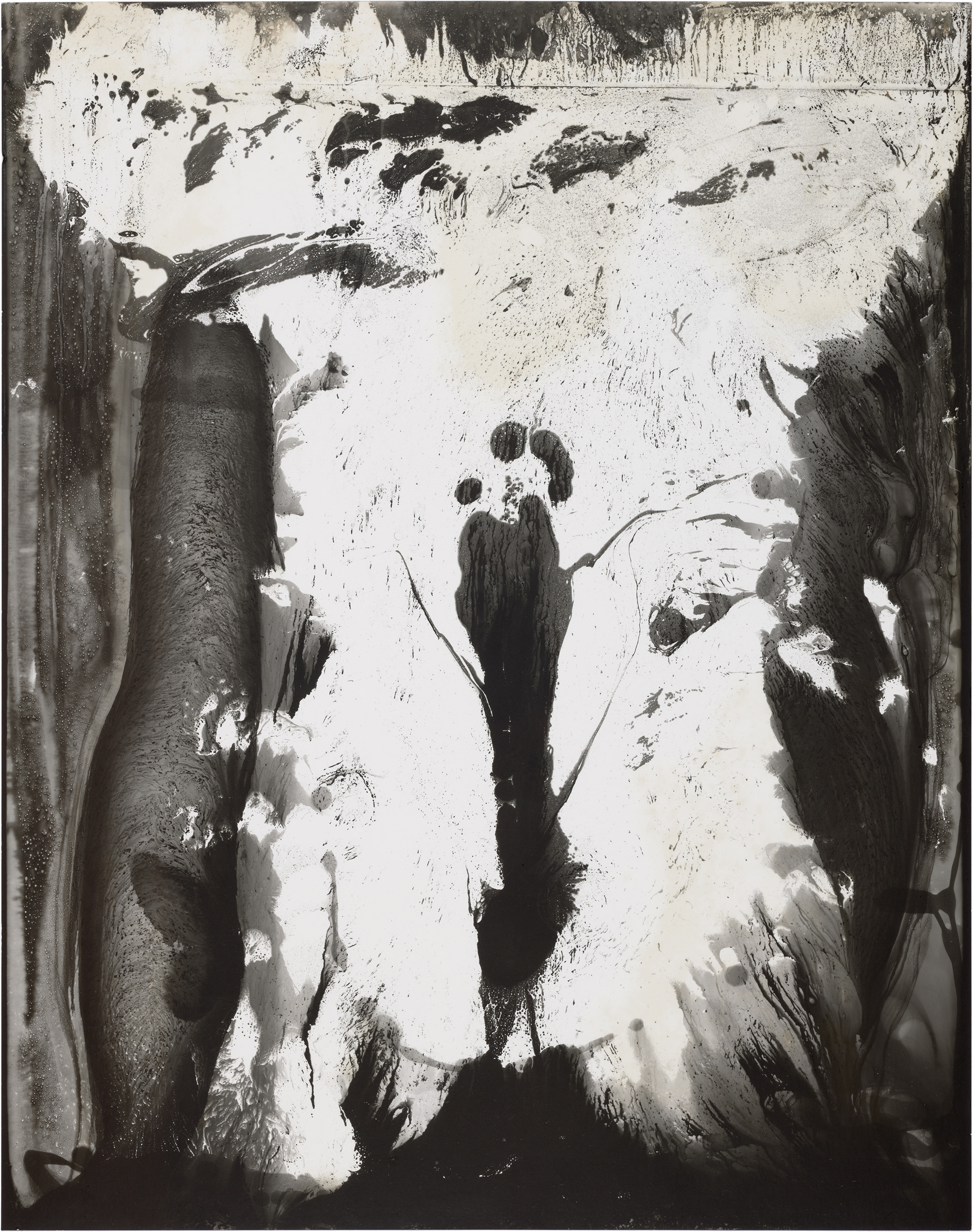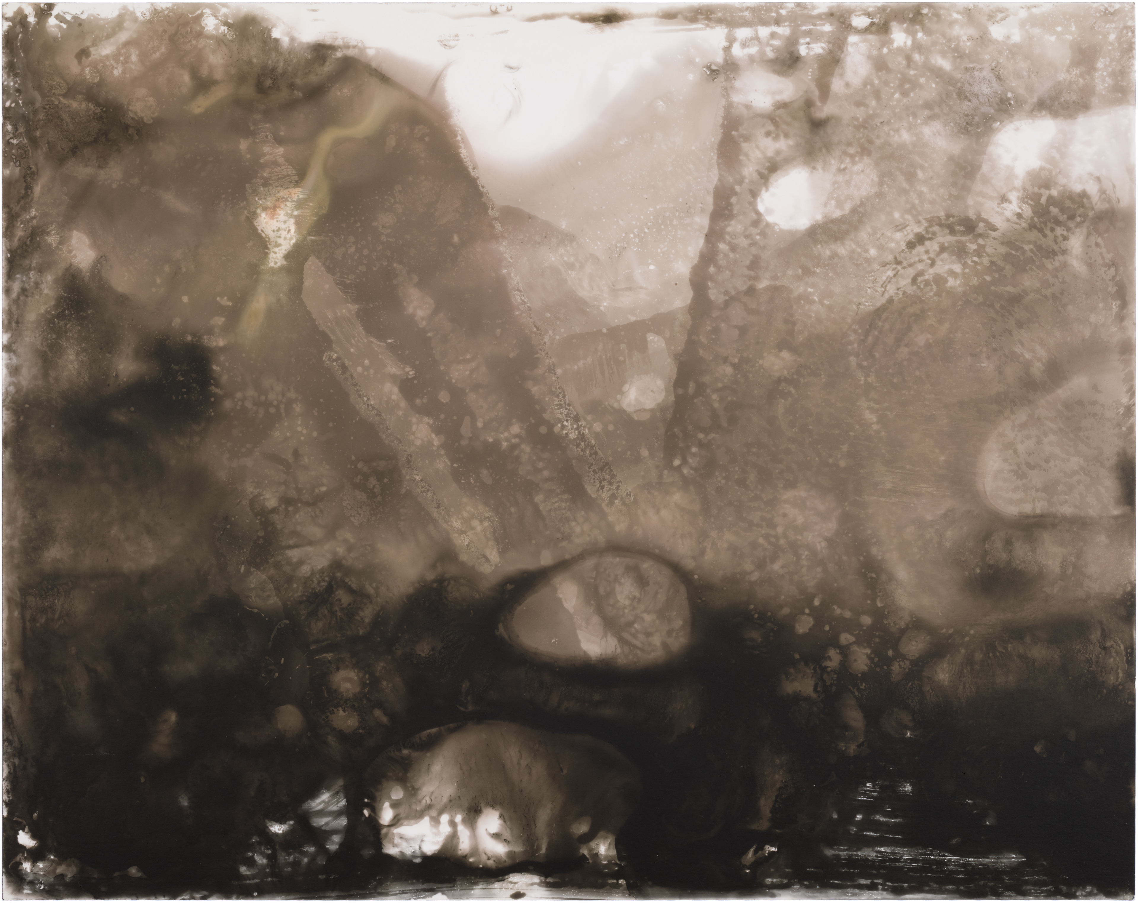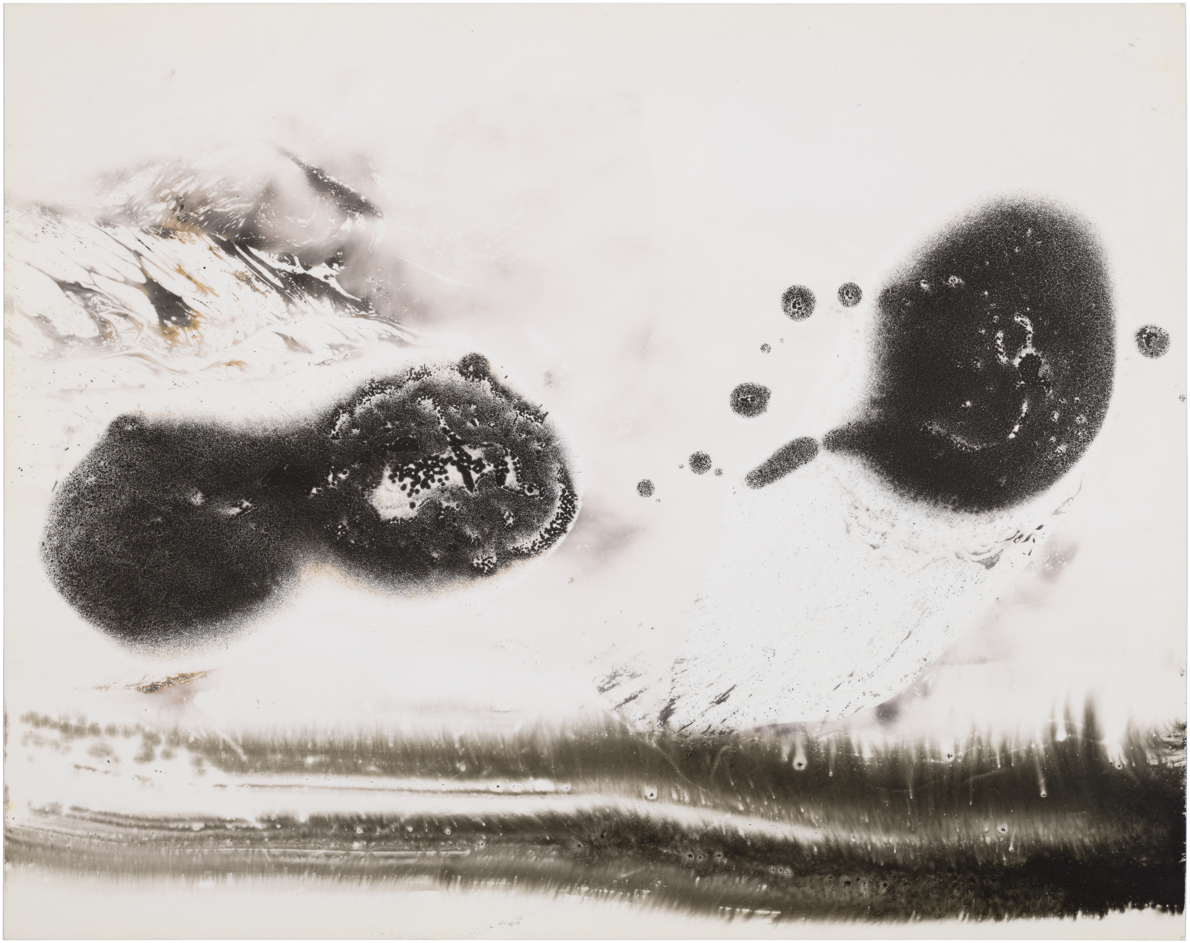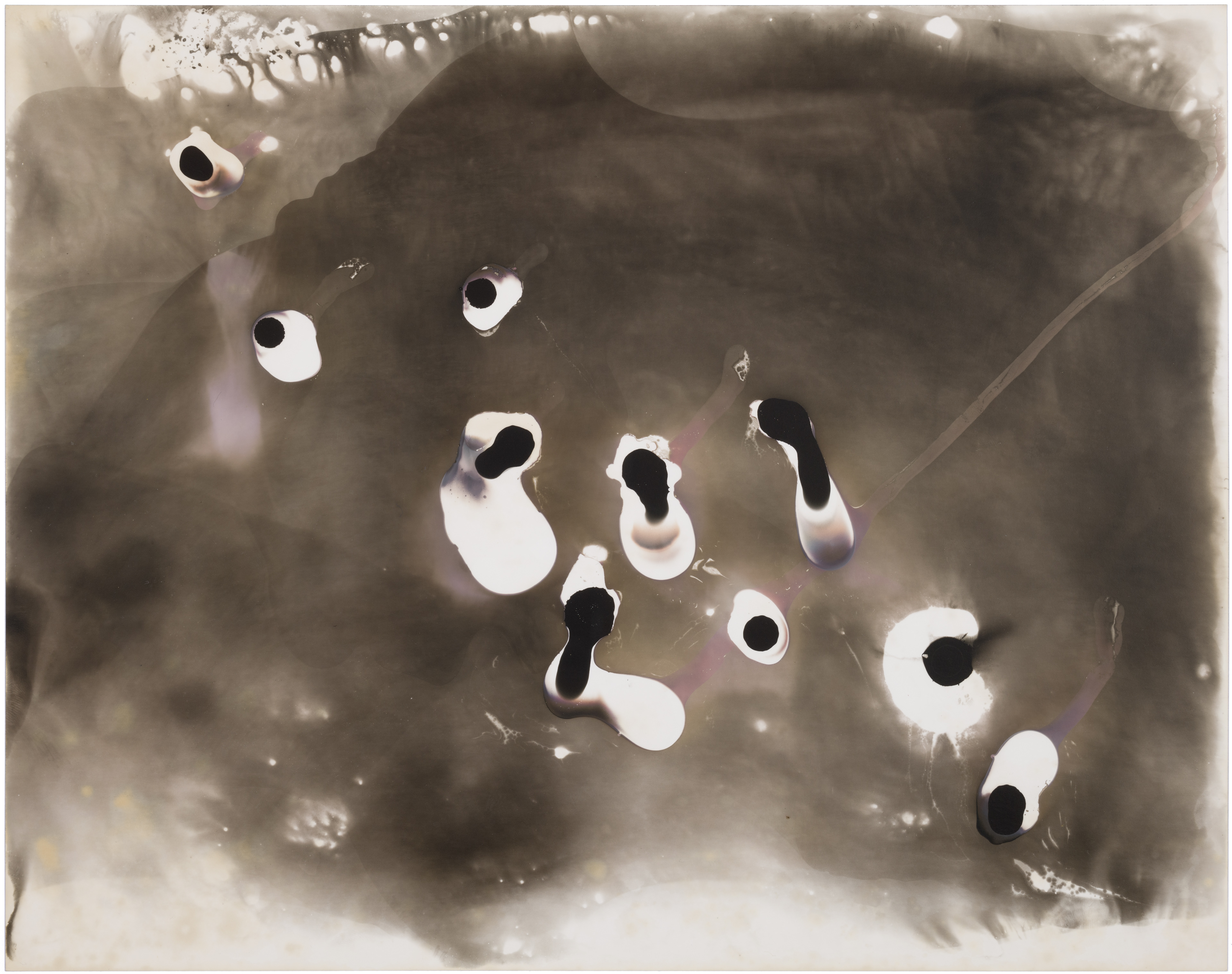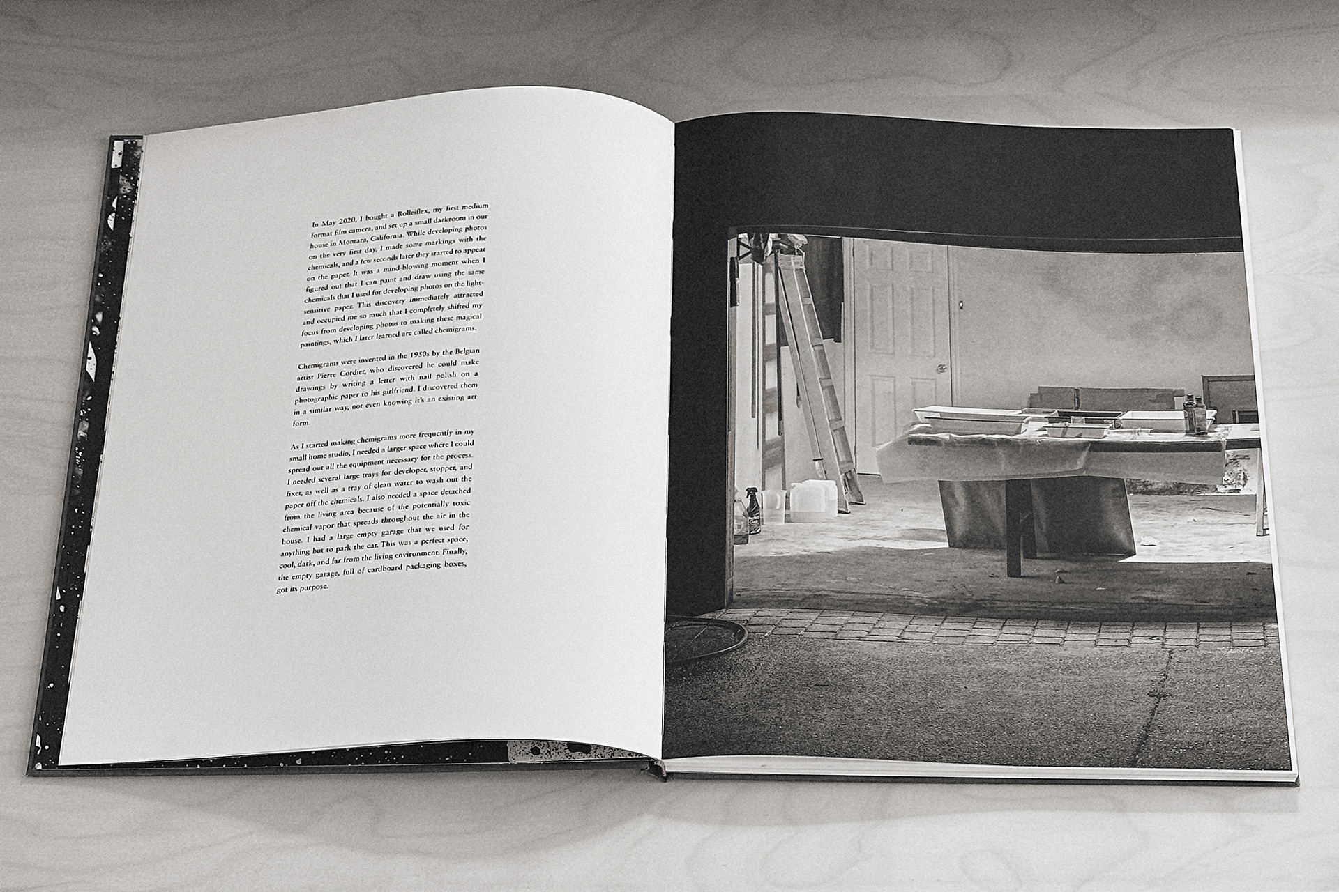 In May 2020, I bought Rolleiflex, my first film medium format camera and I have set up a small photographic darkroom in our house in Montara, California. While developing photos on the very first day, I made some markings with the chemicals, and a few seconds later they started to appear on paper. It was a mind-blowing moment when I figured out that I can paint and draw using the same chemicals that I used for developing photos on the light-sensitive paper. This discovery immediately attracted and occupied me so much, that I completely shifted my time from developing films to making these magical paintings, which I learned later are called chemigrams.