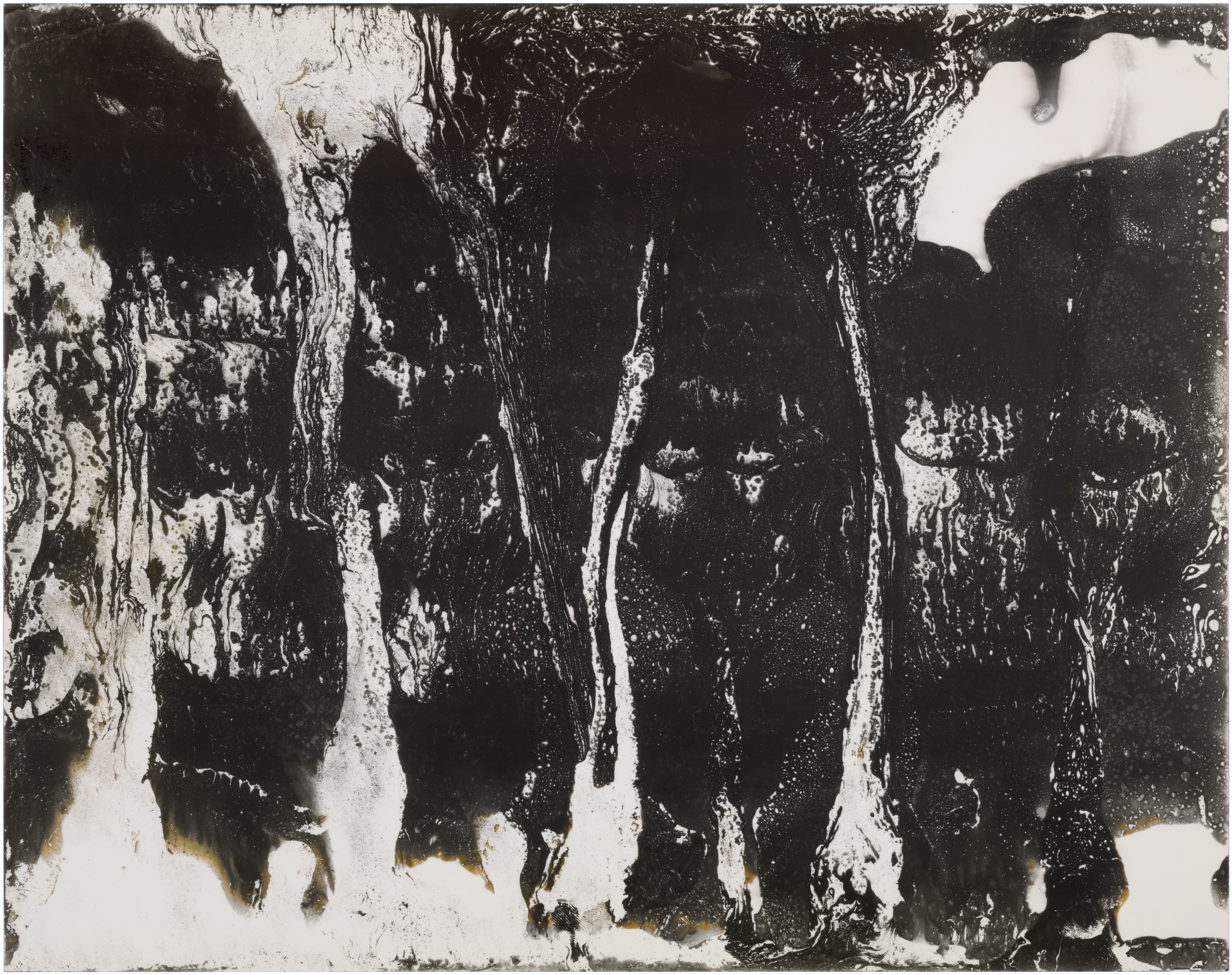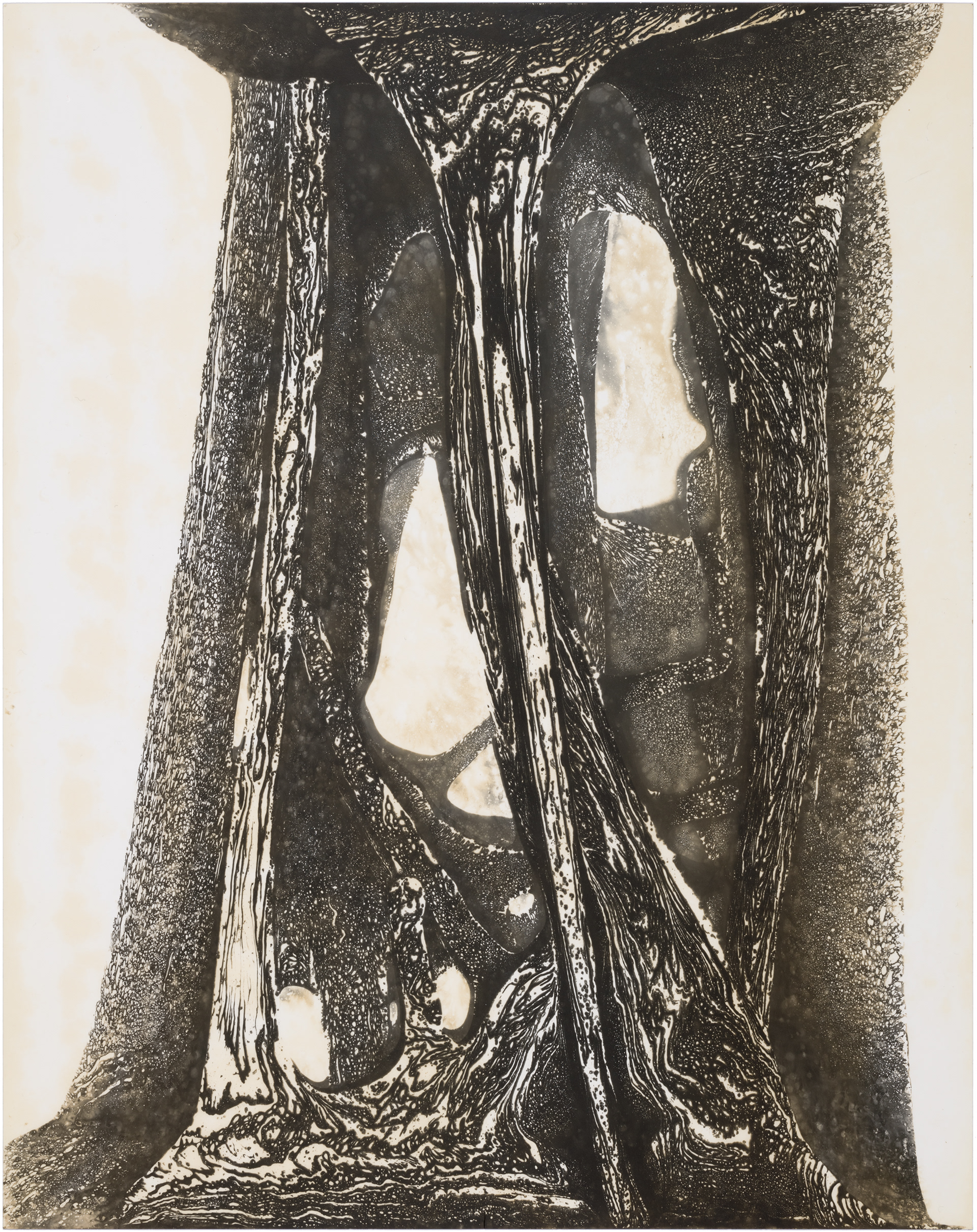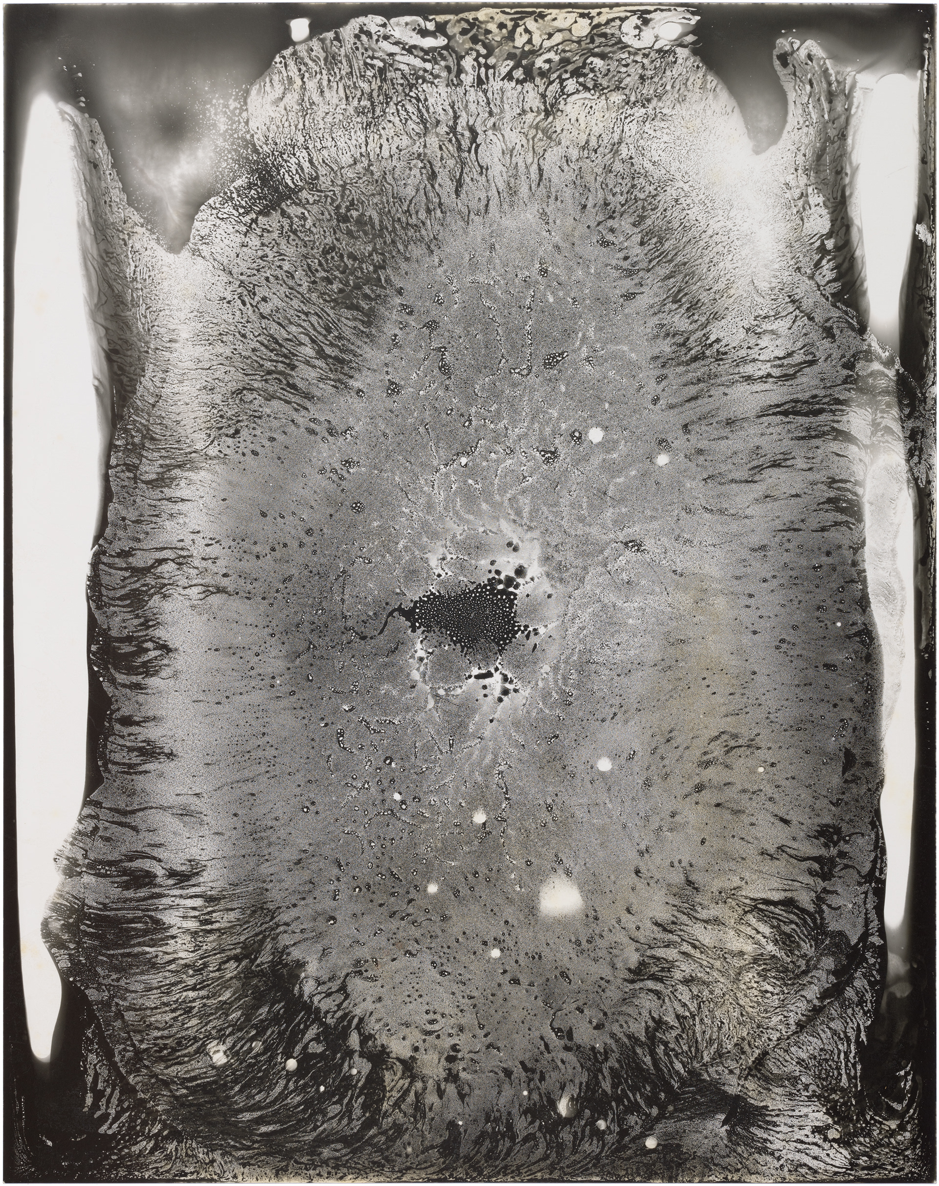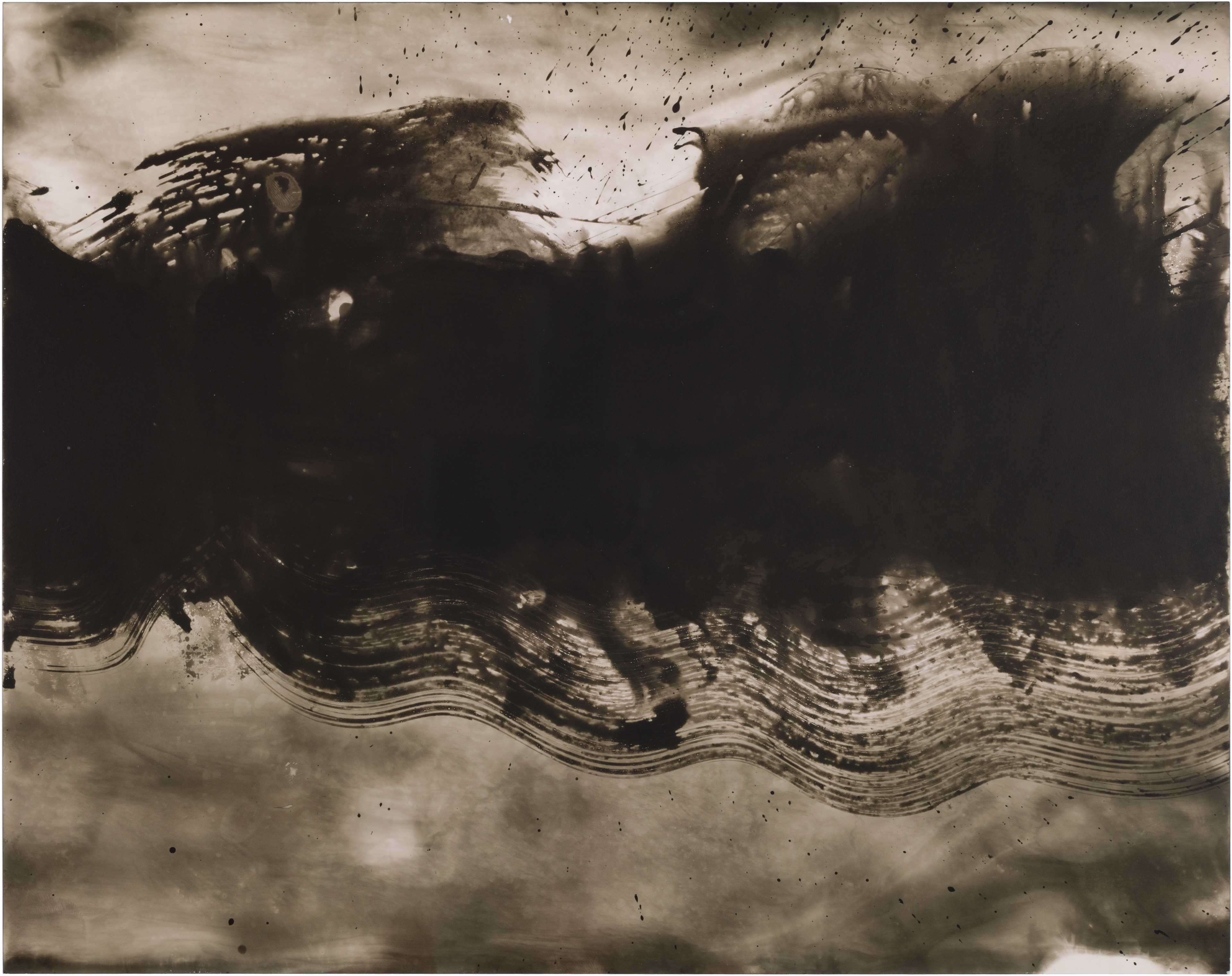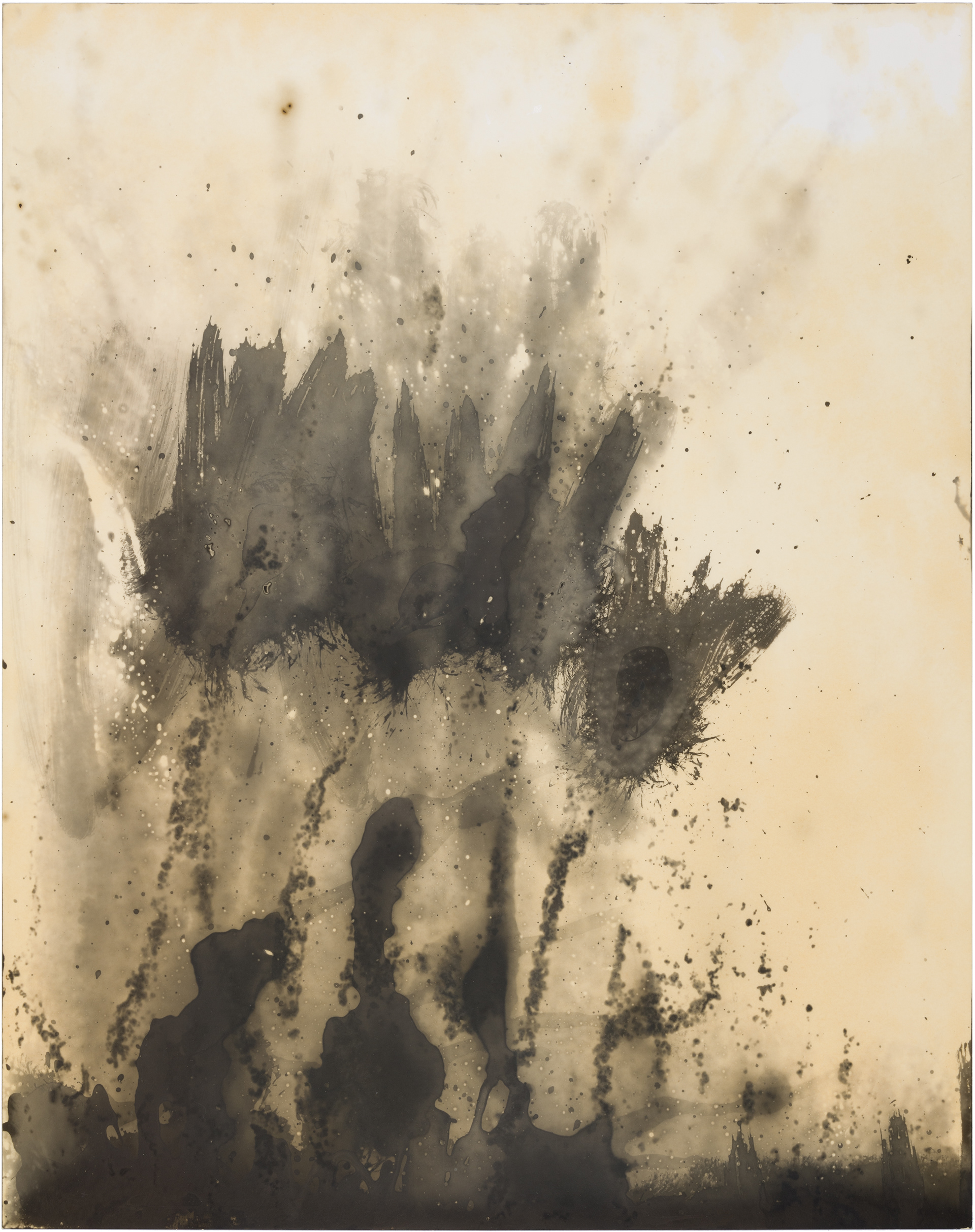 In May 2020, I bought Rolleiflex, my first film medium format camera and I have set up a small photographic darkroom in our house in Montara, California. While developing photos on the very first day, I made some markings with the chemicals, and a few seconds later they started to appear on paper. It was a mind-blowing moment when I figured out that I can paint and draw using the same chemicals that I used for developing photos on the light-sensitive paper. This discovery immediately attracted and occupied me so much, that I completely shifted my time from developing films to making these magical paintings, which I learned later are called chemigrams.