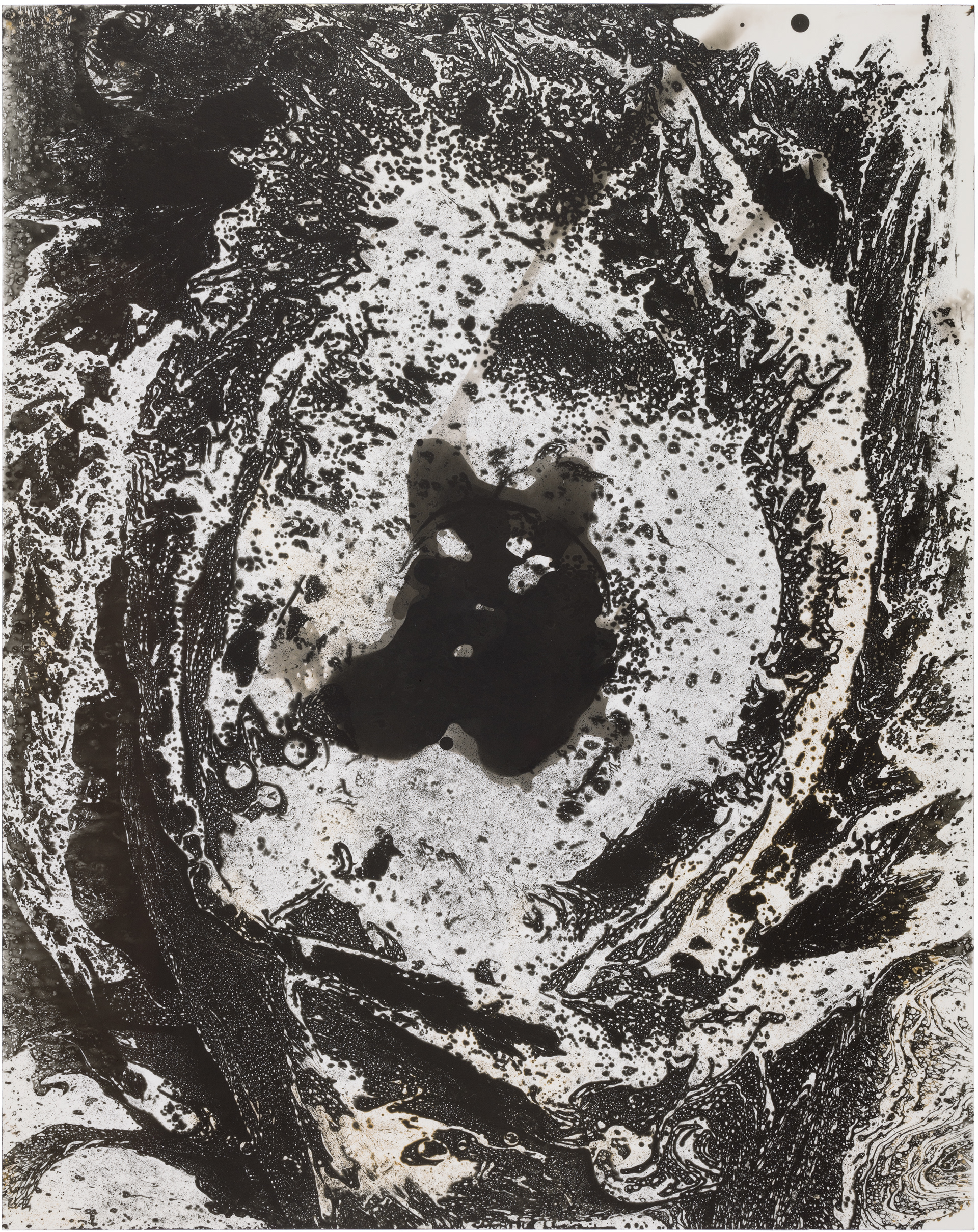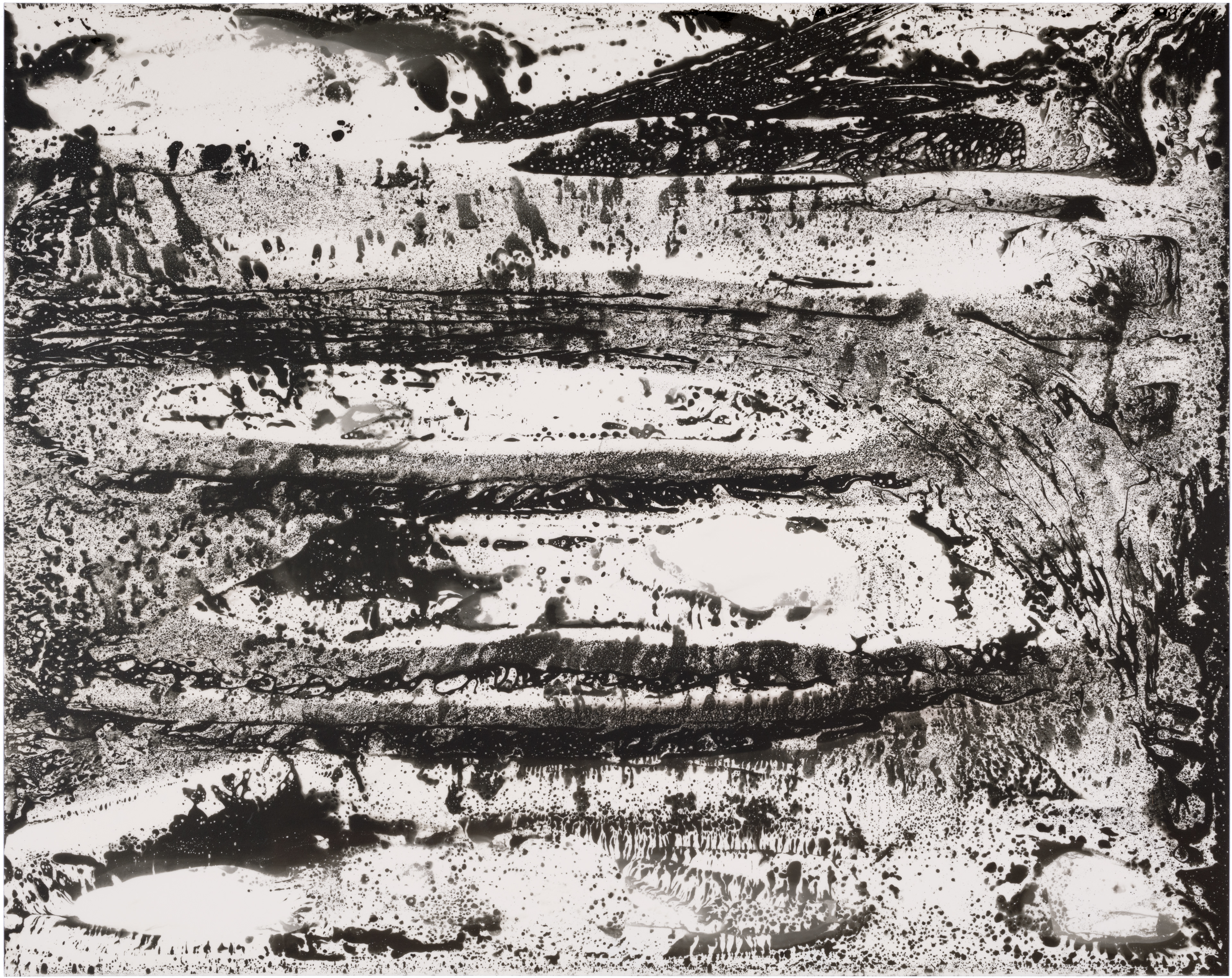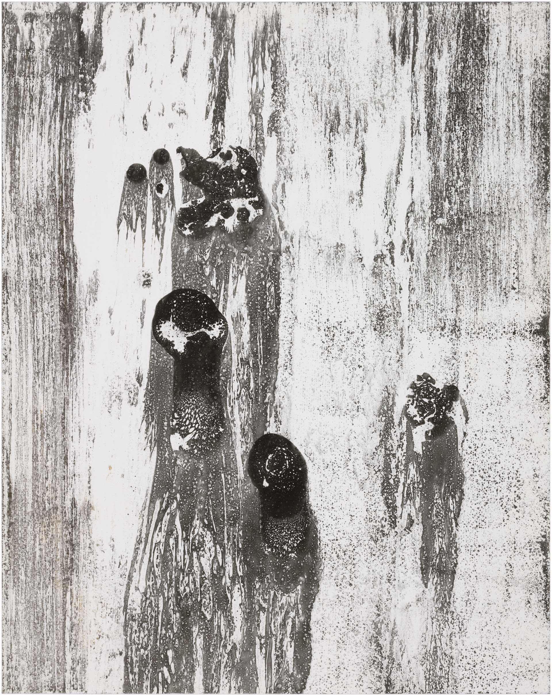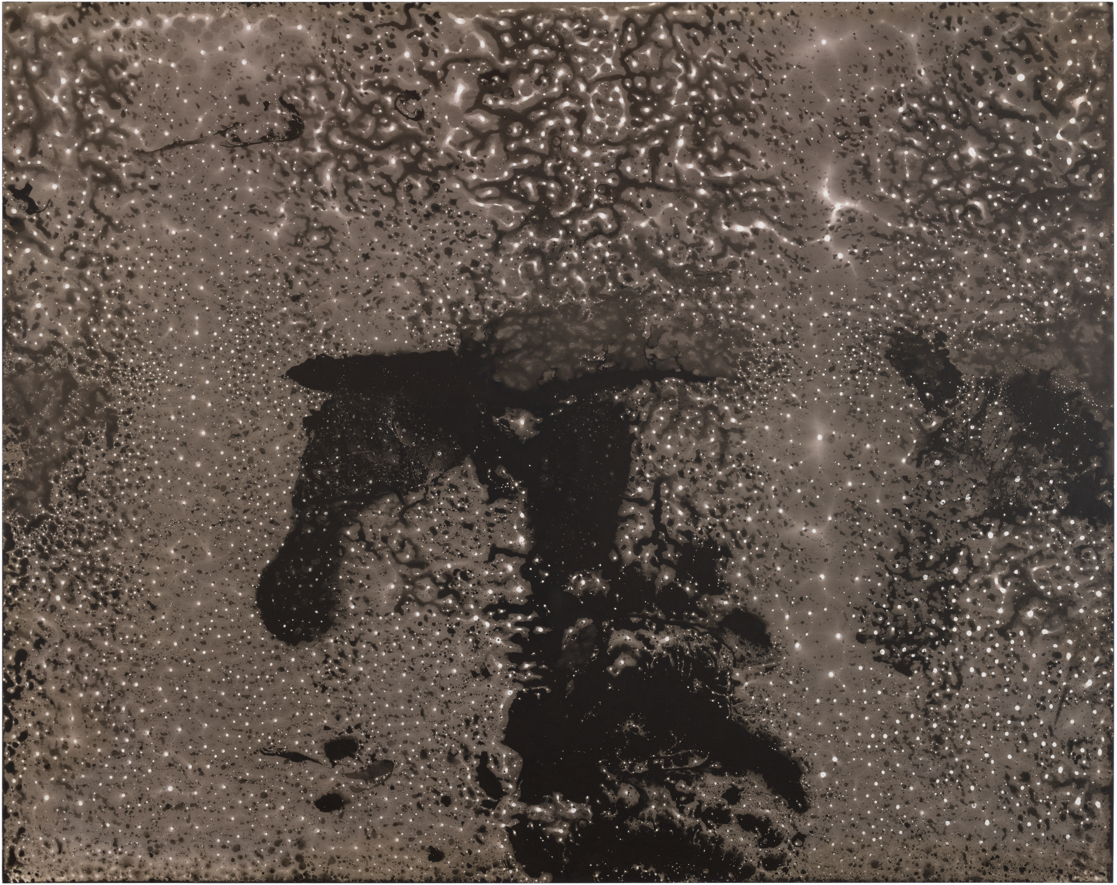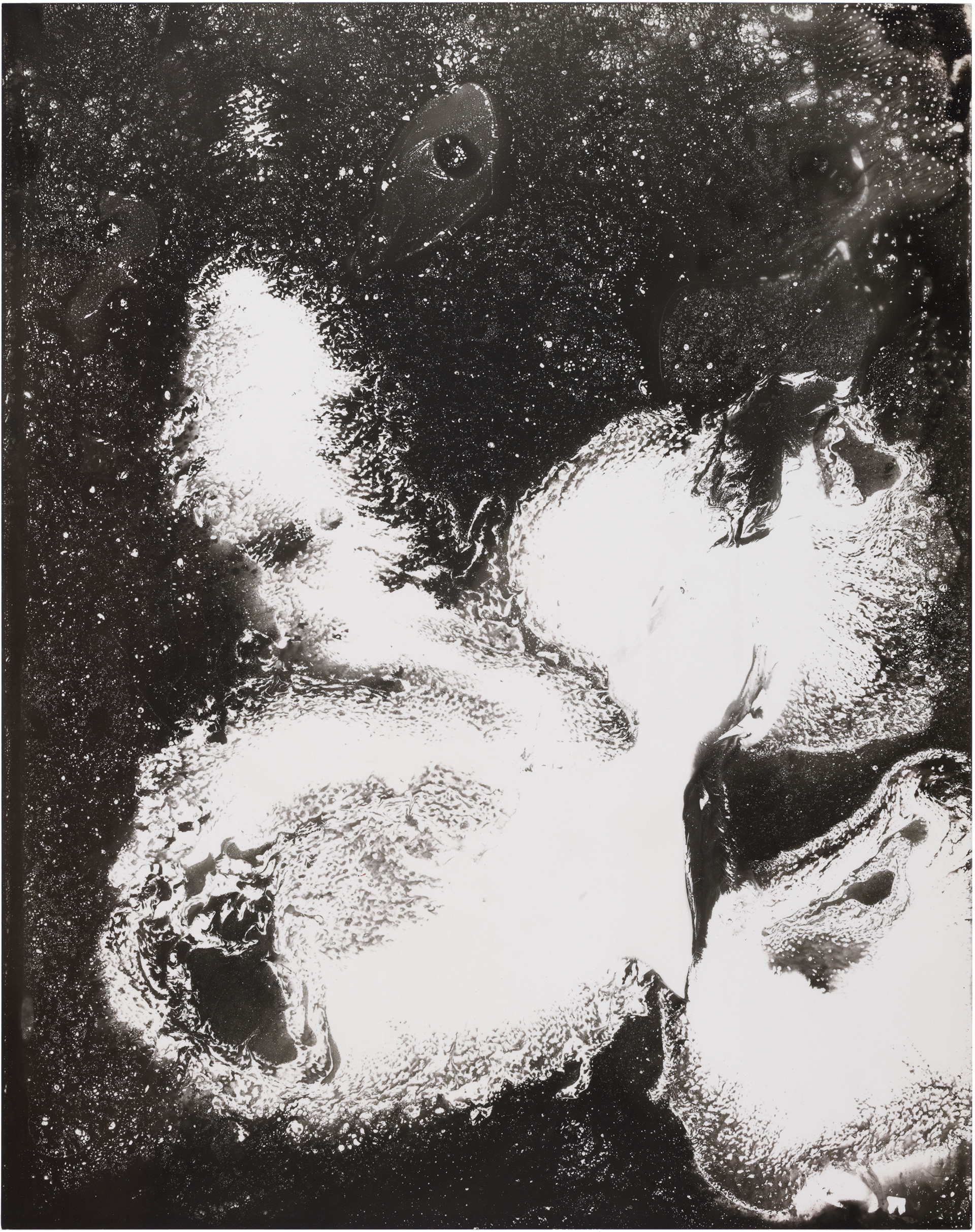 Ghosts is a series of six images selected from a larger composition. These fragments revealed a natural cohesion and balance when seen together, standing out from the rest. Each image captures an abstract, almost cosmic play of light and dark, with spontaneous shapes, splatters, and textures. Up close, the surfaces reveal intricate patterns and hidden landscapes, inviting the viewer to explore both the broad gestures and the delicate details within.