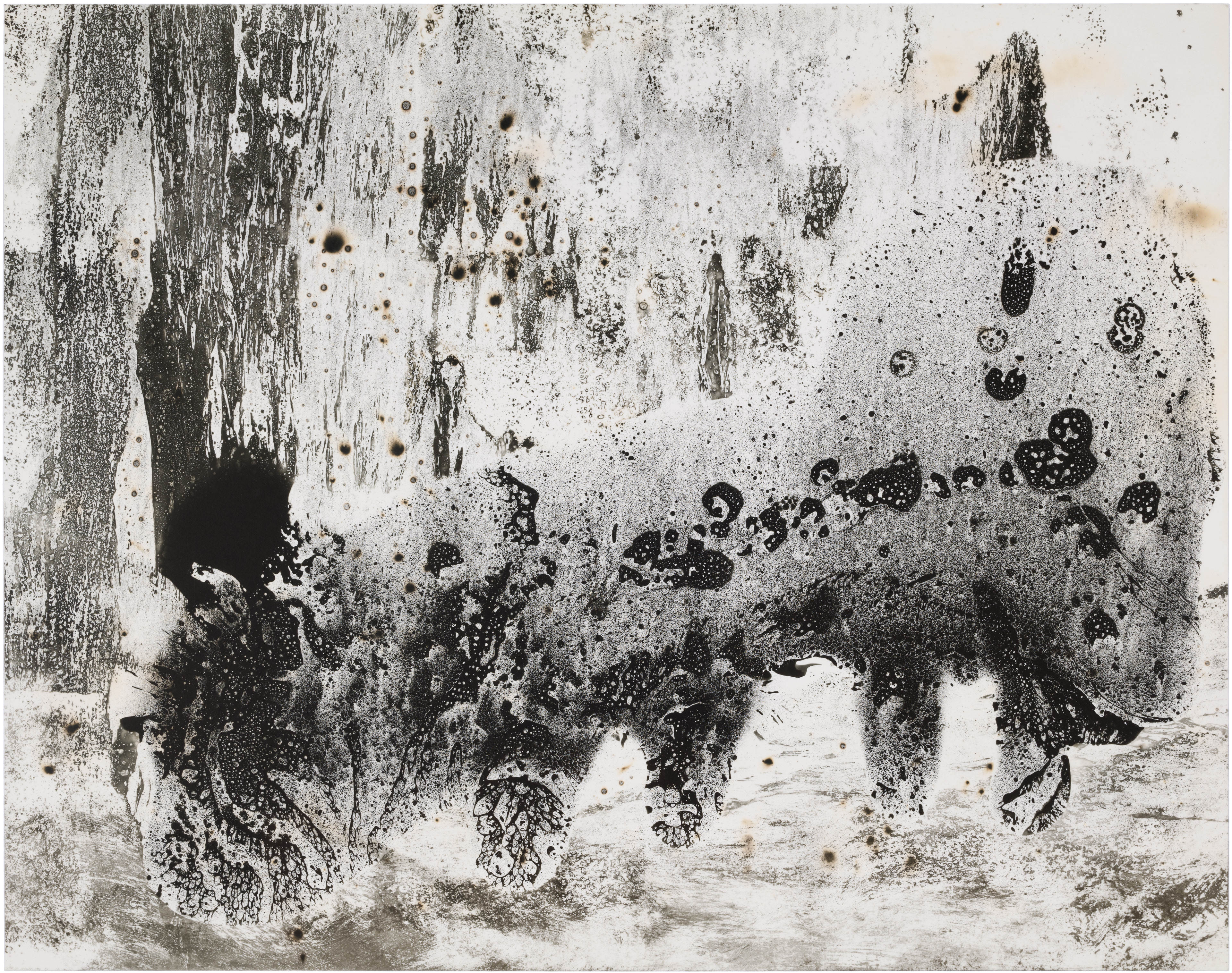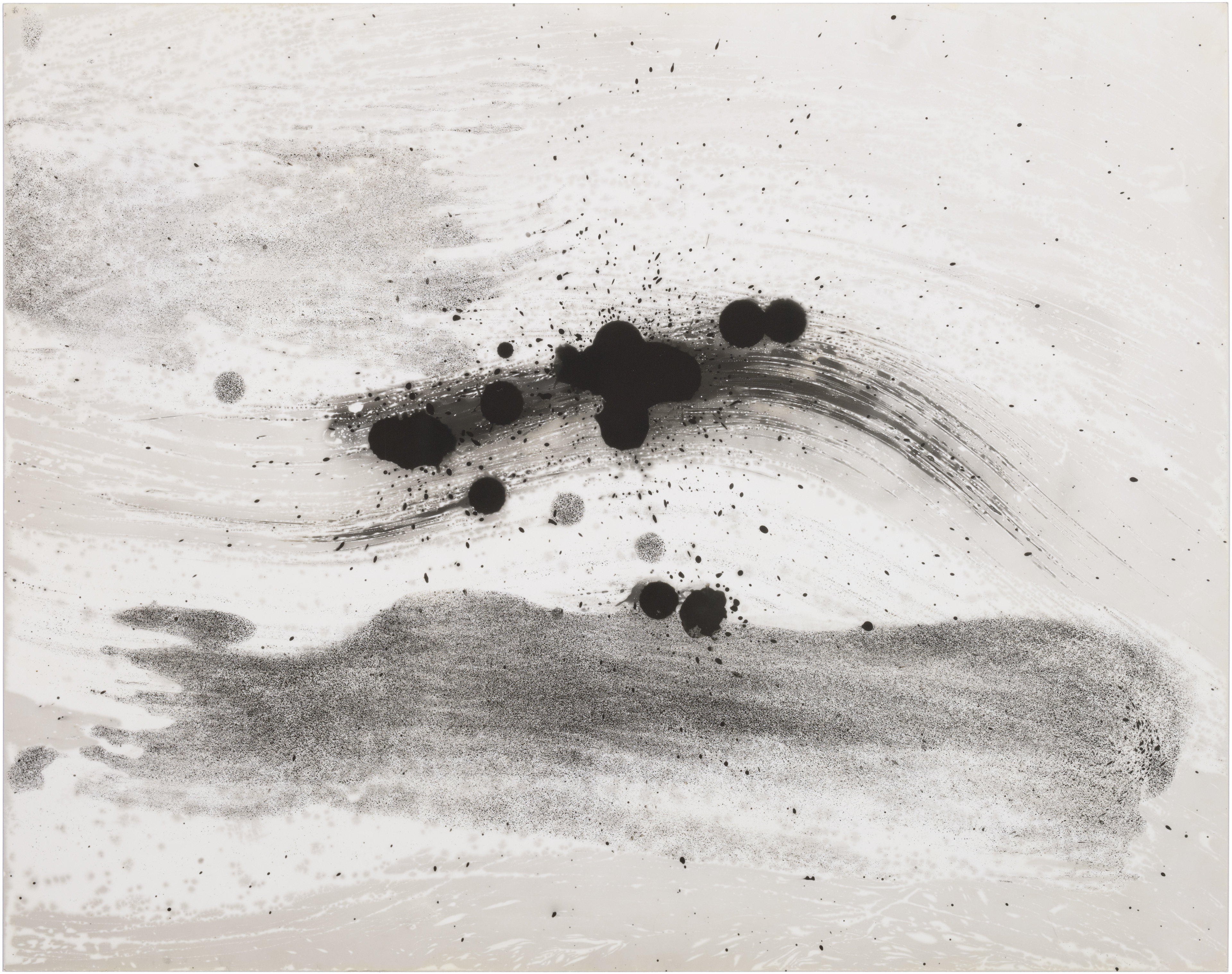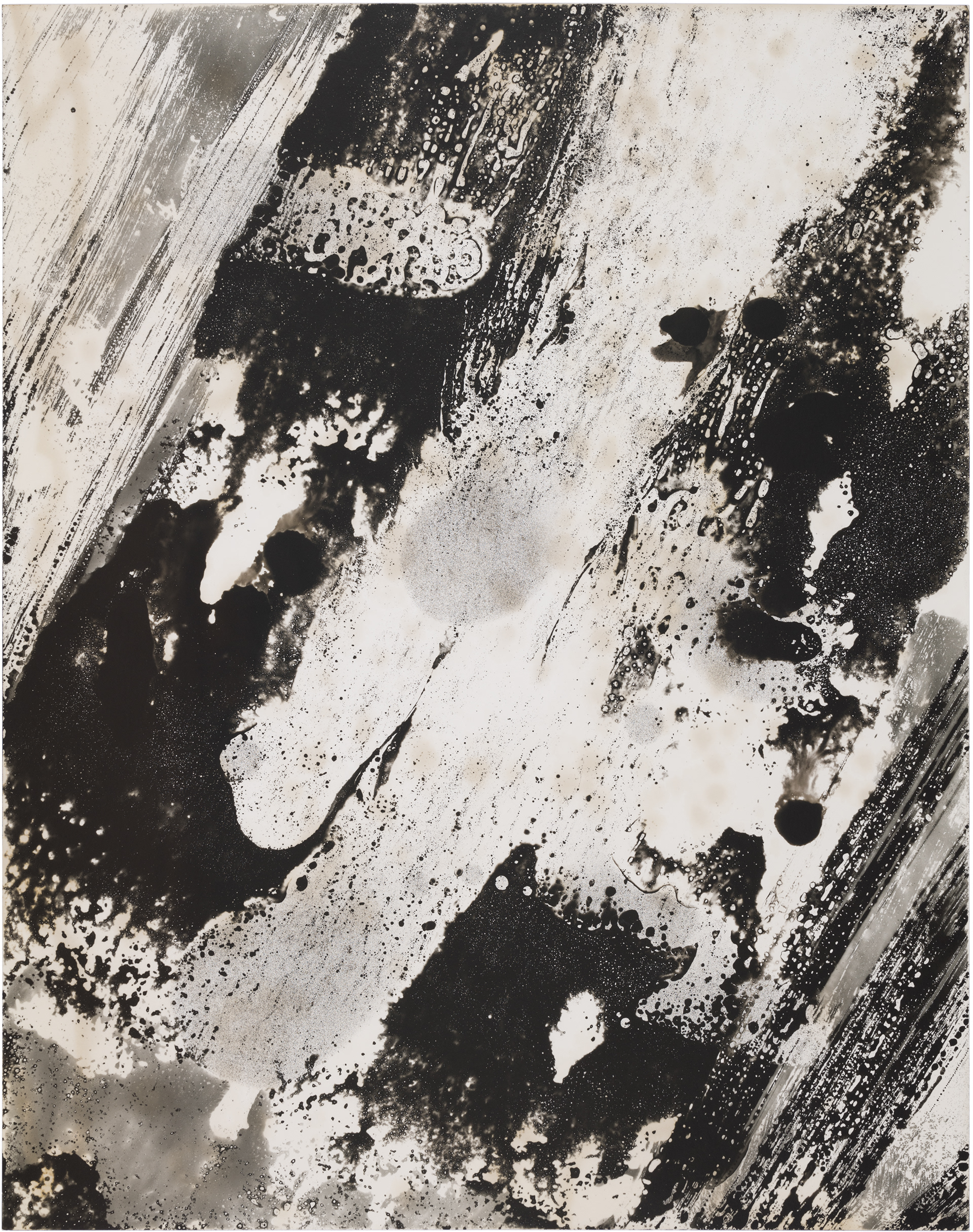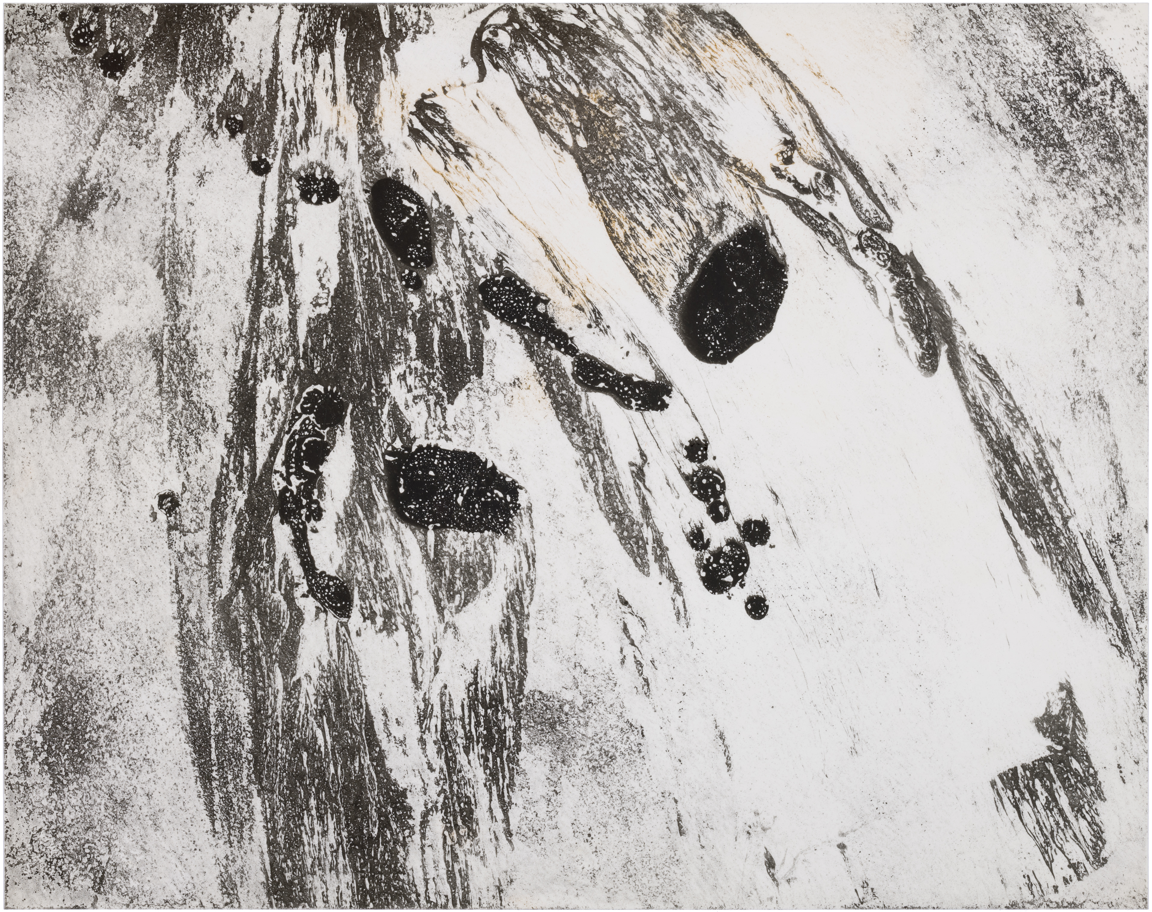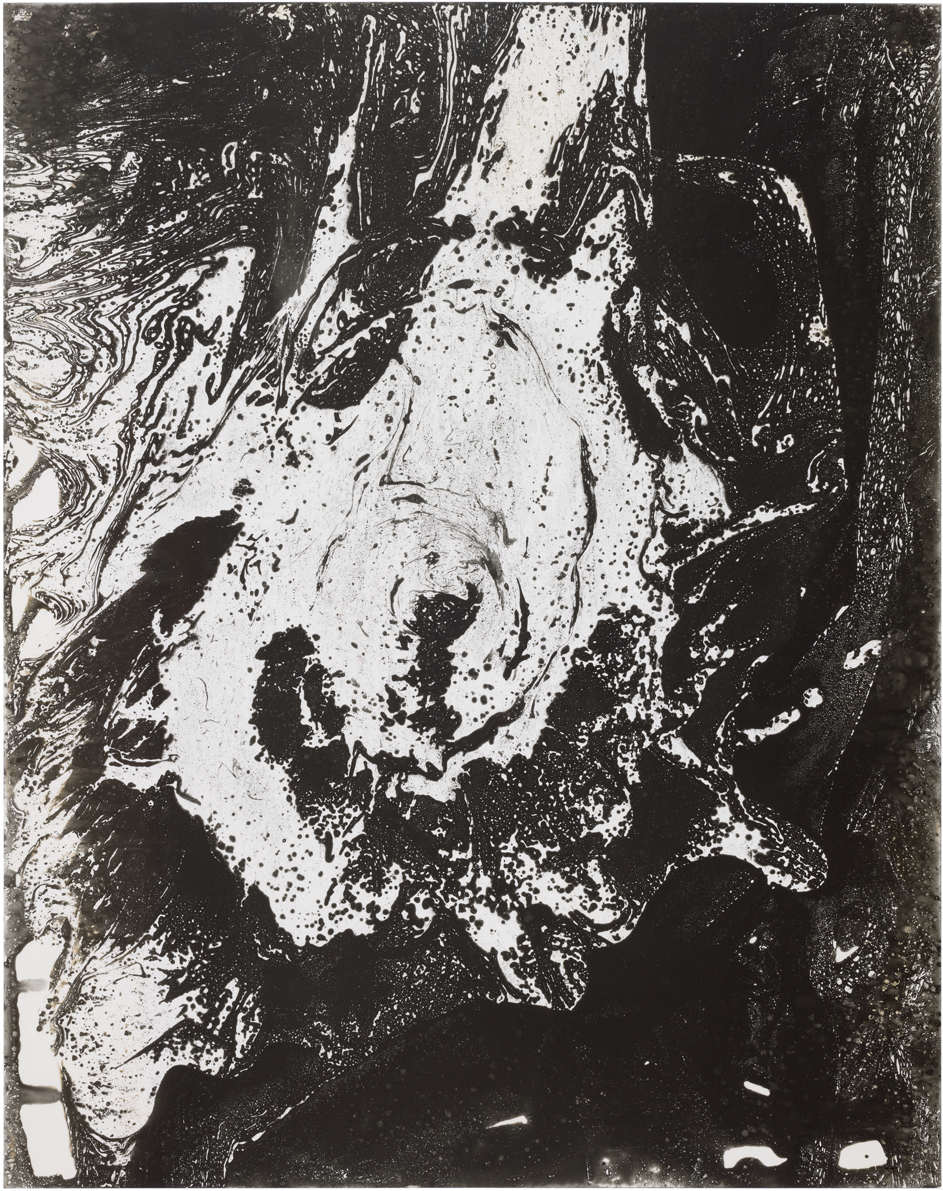 Ghosts is a series of six images selected from a larger composition. These fragments revealed a natural cohesion and balance when seen together, standing out from the rest. Each image captures an abstract, almost cosmic play of light and dark, with spontaneous shapes, splatters, and textures. Up close, the surfaces reveal intricate patterns and hidden landscapes, inviting the viewer to explore both the broad gestures and the delicate details within.
