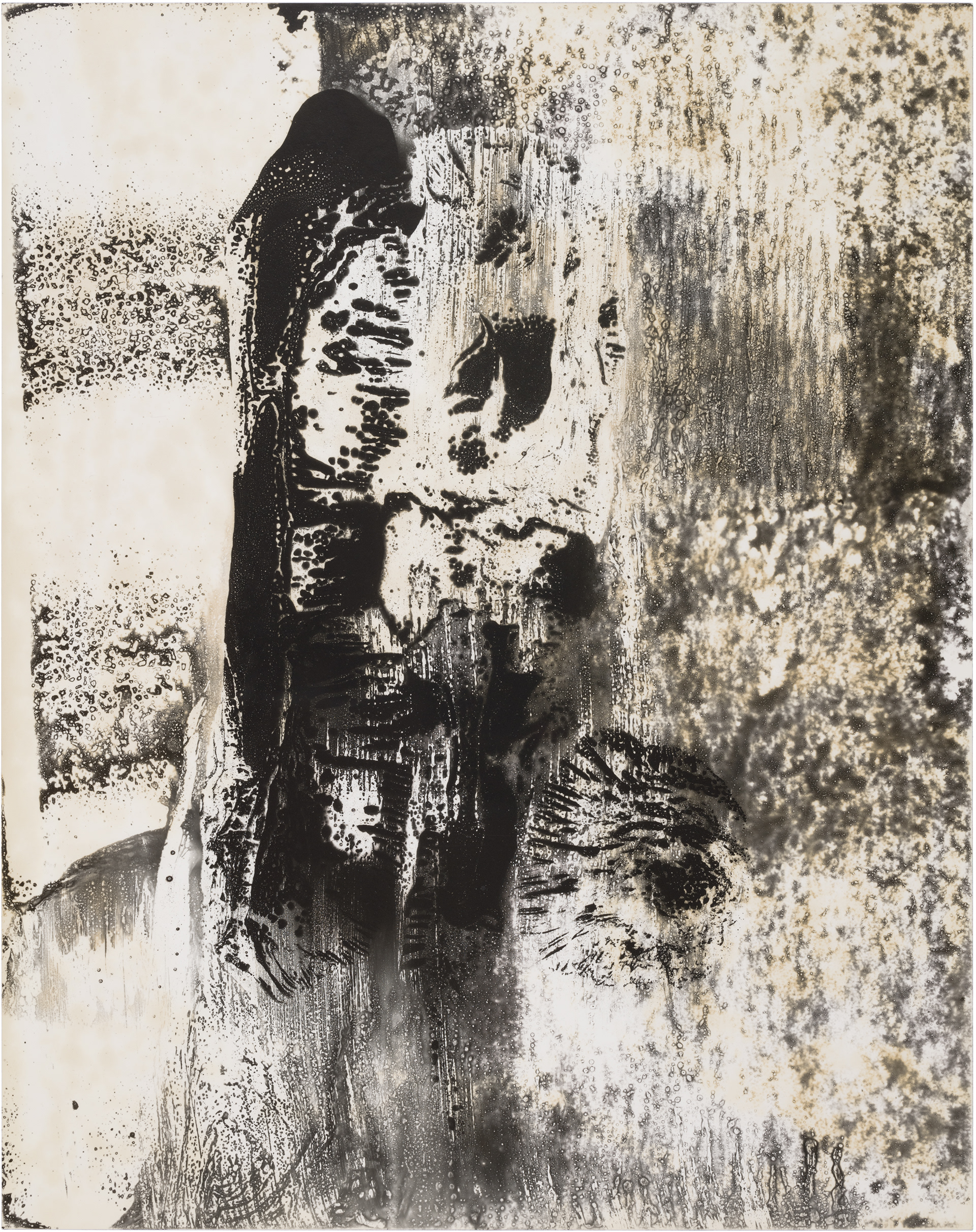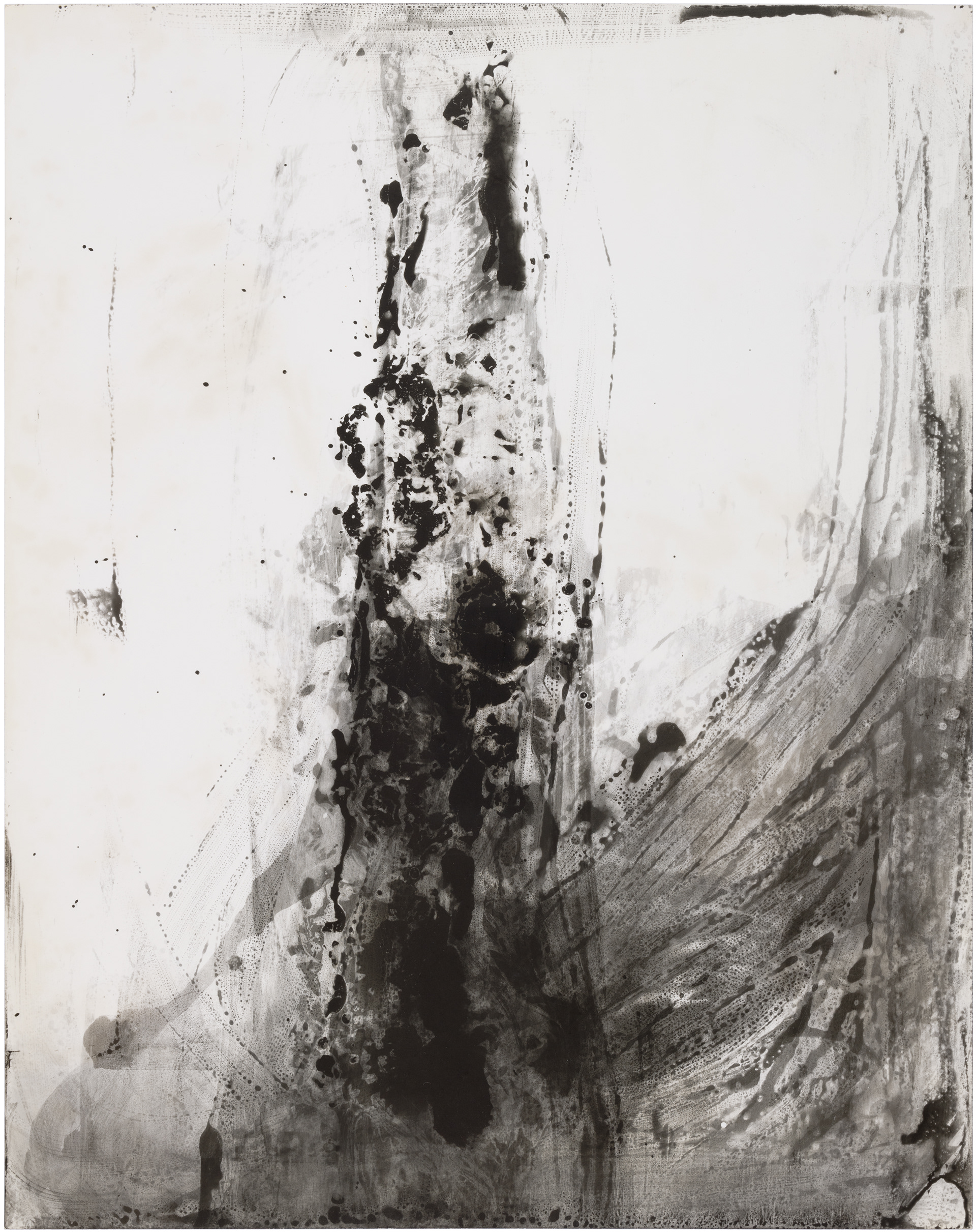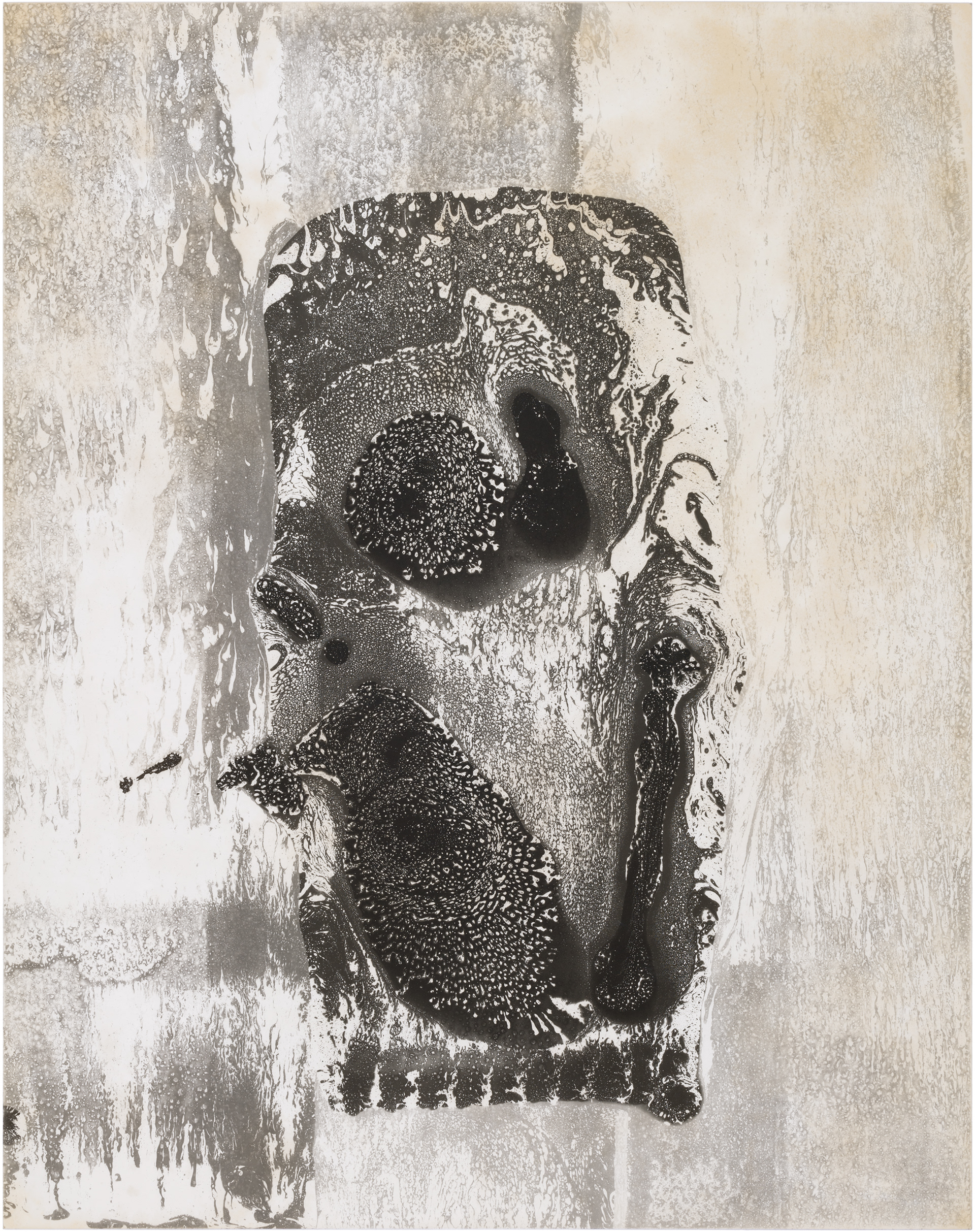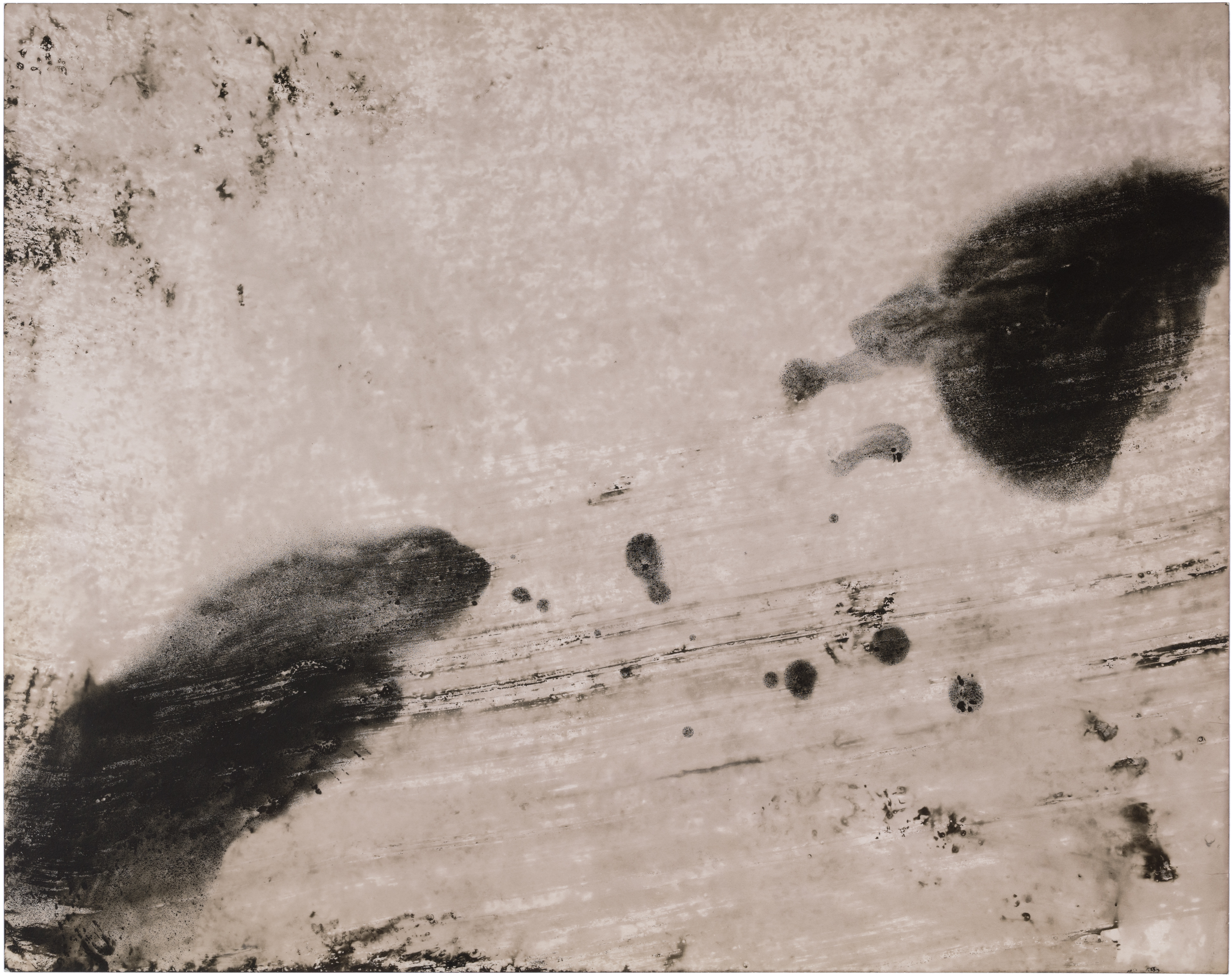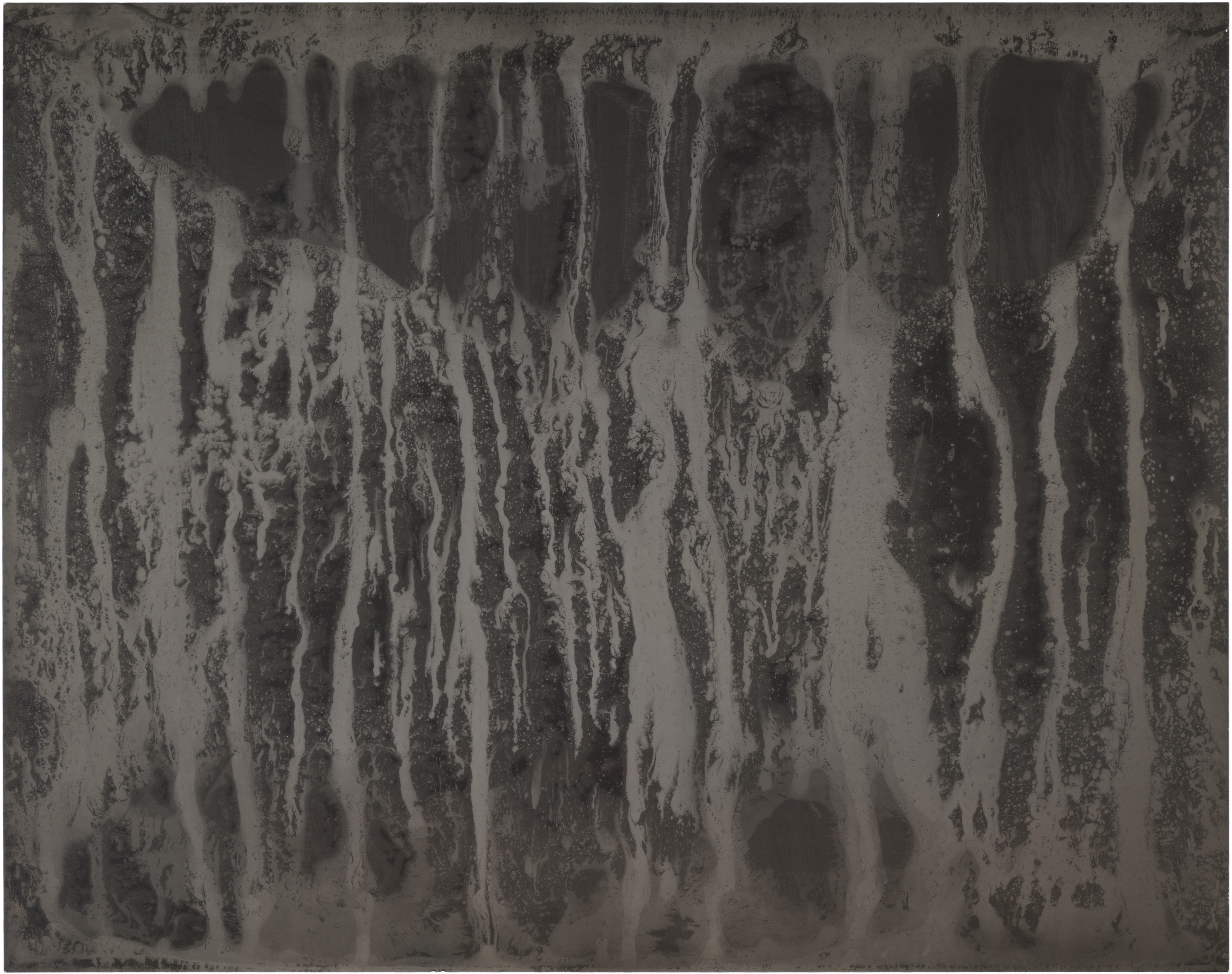 Ghosts is a series of six images selected from a larger composition. These fragments revealed a natural cohesion and balance when seen together, standing out from the rest. Each image captures an abstract, almost cosmic play of light and dark, with spontaneous shapes, splatters, and textures. Up close, the surfaces reveal intricate patterns and hidden landscapes, inviting the viewer to explore both the broad gestures and the delicate details within.